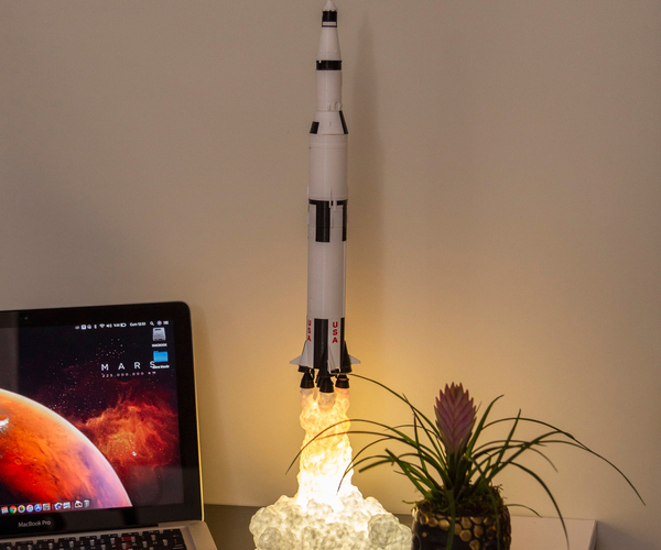 Blast off and take your decor to new heights with this Apollo 11 Saturn Rocket. Houston, you will not have a problem with this handmade lamp, which seems to float on a cloud illuminated by an LED light. It's 3D-printed, so it'll last you a good long time.