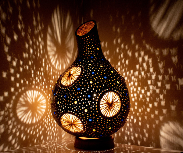 Goodness, gracious, great gourds of light! This stunning calabash shadow lamp infuses your home with rustic wonder and just a touch of Turkish beauty. Each piece is handcrafted so it's one of a kind and it sparkles in addition to casting a beautiful silhouette on the wall.