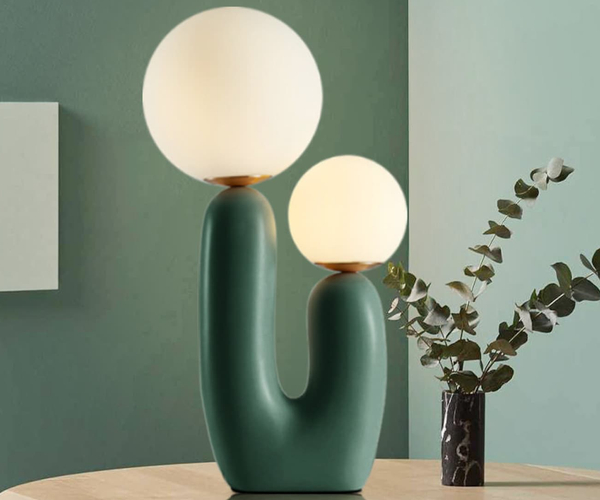 With double the bubbles, you have to think that this lamp is double the fun. And it is! The funky piece comes in a white, orange, or green base that's kind of bulbous, giving it a retro look. It's just over 10" tall at its highest and makes a sleek addition to a space.