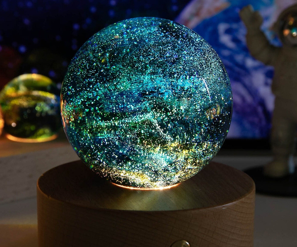 Visit strange new worlds with a crystal lamp that'll take you on a trip across the universe. This astounding cosmic lamp comes in aqua, pink, and orange and in three sizes. It bathes a room in a warm, gentle glow, and will help you relax at the end of a long day.