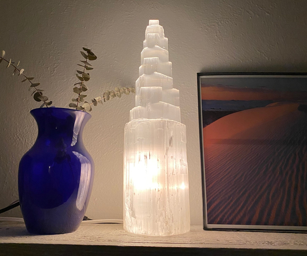 Practitioners of all things New Age probably recognize selenite as a charging stone, it's what gives their crystals an infusion of new energy. If a tiny selenite crystal charges others, imagine what kind of energy you'll get from this 15" pillar. The LED bulb in the bottom only enhances its vibes.